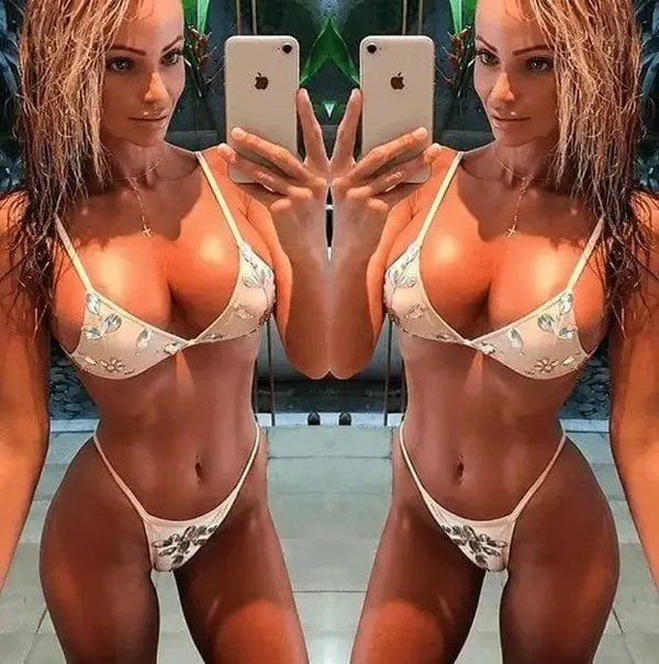 - Design: Stylish and glamorous bikini set adorned with luxurious bling and diamond detailing.