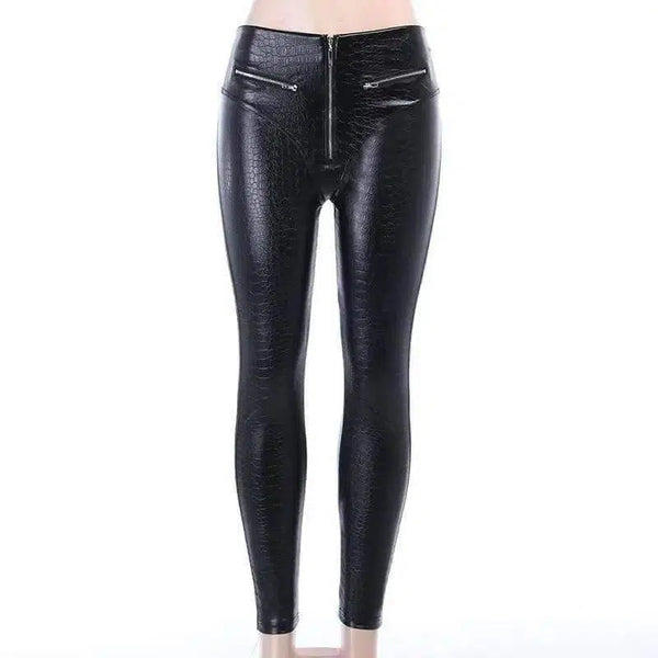 Women's Peach Hip Leather Pants, High Waist, Tight