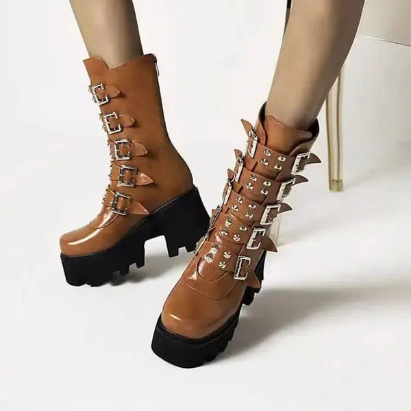 Medium Tube Motorcycle Thick-soled Martin Boots Women