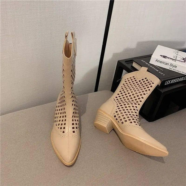 Pointed Western Cowboy Boots Women Thin Hollow Knight Thick
