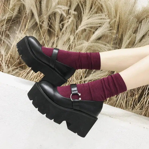 Round buckle retro platform platform shoes