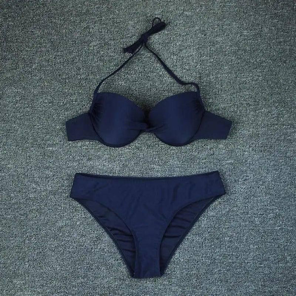 Solid Color Hard Bag Backless Bikini Swimsuit Women