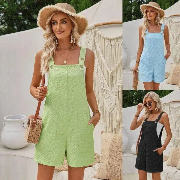 Sweet Waffle Jumpsuit Girls Summer Sleeveless Button Design Straight Solid Color Overalls Fashion Womens Clothing