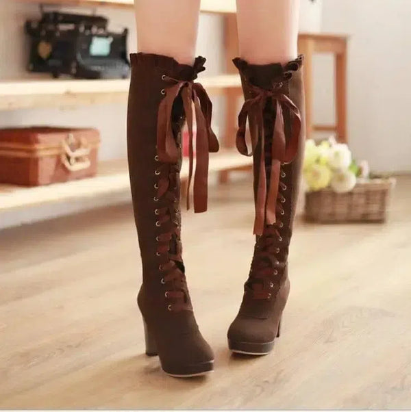 Product Description: Velvet Strappy High Heels Tall Boots for Women
