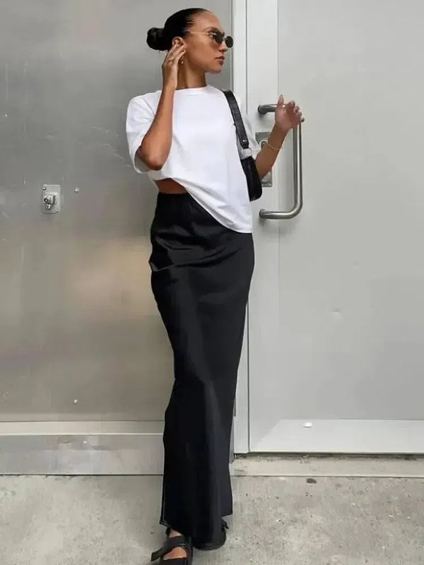 Women's Black Elegant Satin Fashion Slim Skirts Four Seasons