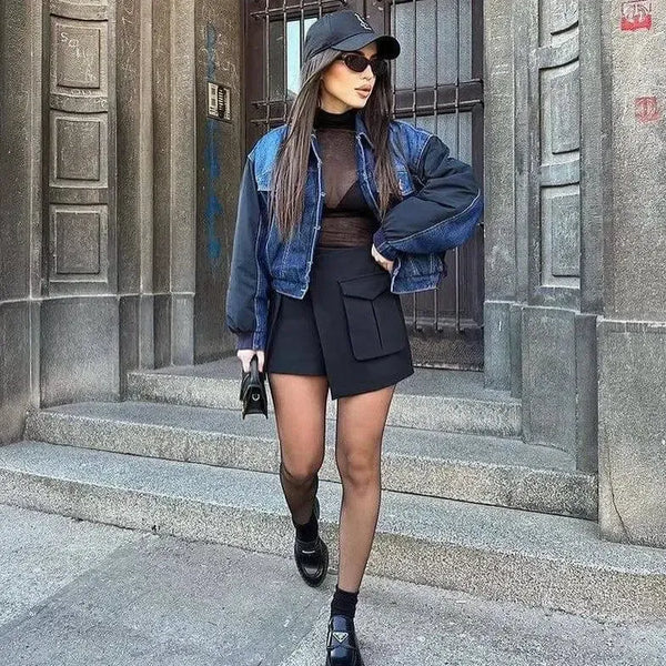 Women's Casual Patchwork Denim Pilot Jacket Coat