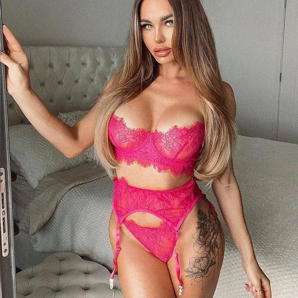 Product Description: Women's Embroidered Lace Pearl Sling Lingerie Three