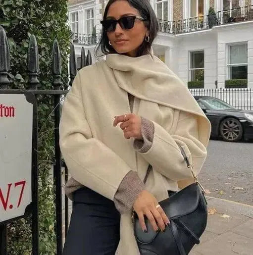 Women's Fashion Casual Pure White Cardigan Woolen Coat