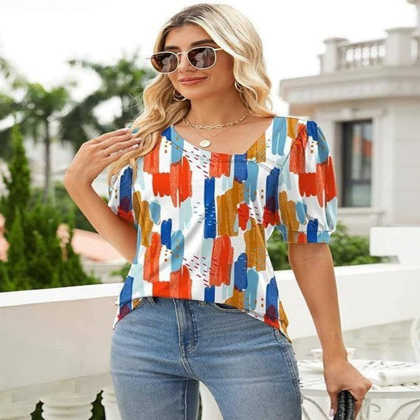 Women's Short Sleeve Irregular Puff Sleeve Loose Floral